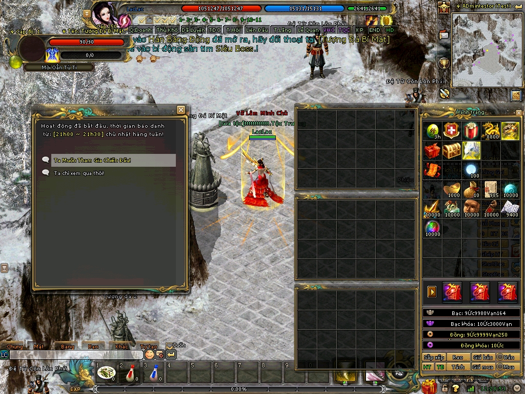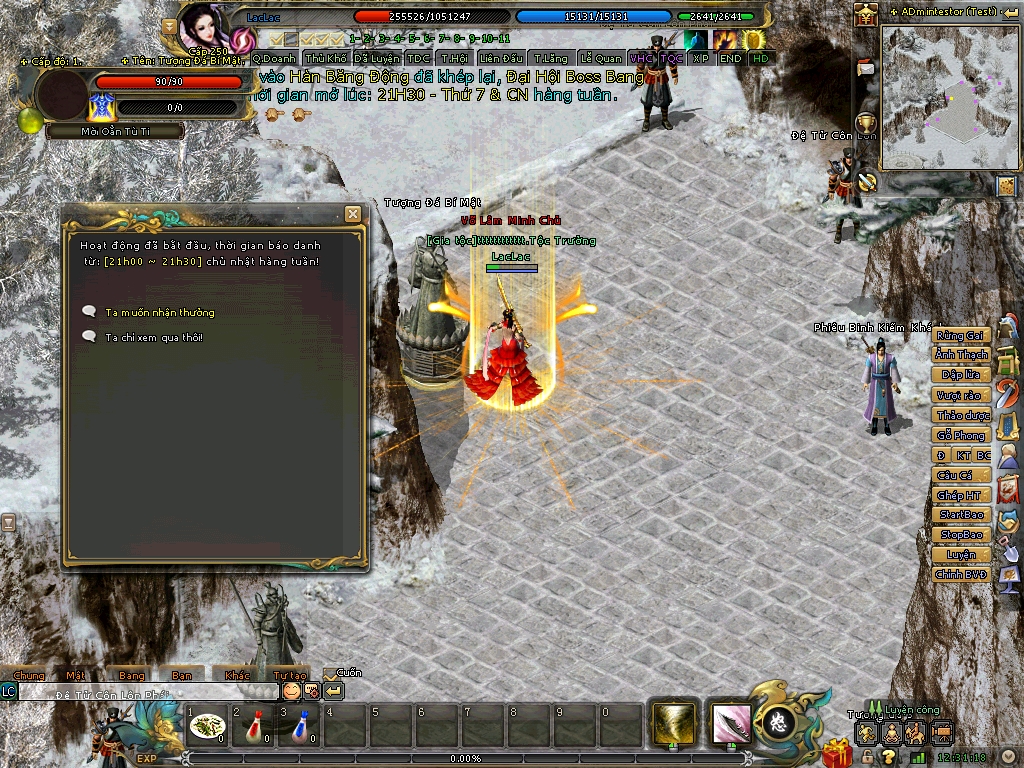 | Sự Kiện Bắt Đầu Báo Danh Vào 21h00 Thứ 7 Và Chủ Nhật Hàng Tuần | Sau Khi Có Thông Báo Sự Kiện Bắt Đầu Báo Danh: - Anh Hùng Gặp NPC Lý Thăng Long Để Tiến Hành Báo Danh.