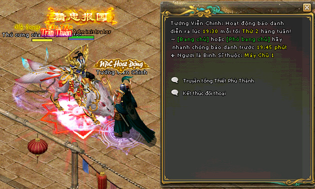 - Sau khi hoạt động mở báo danh, quí nhân sĩ đối thoại npc Tướng Viễn Chinh để đăng ký báo danh và bước vào doanh trại.