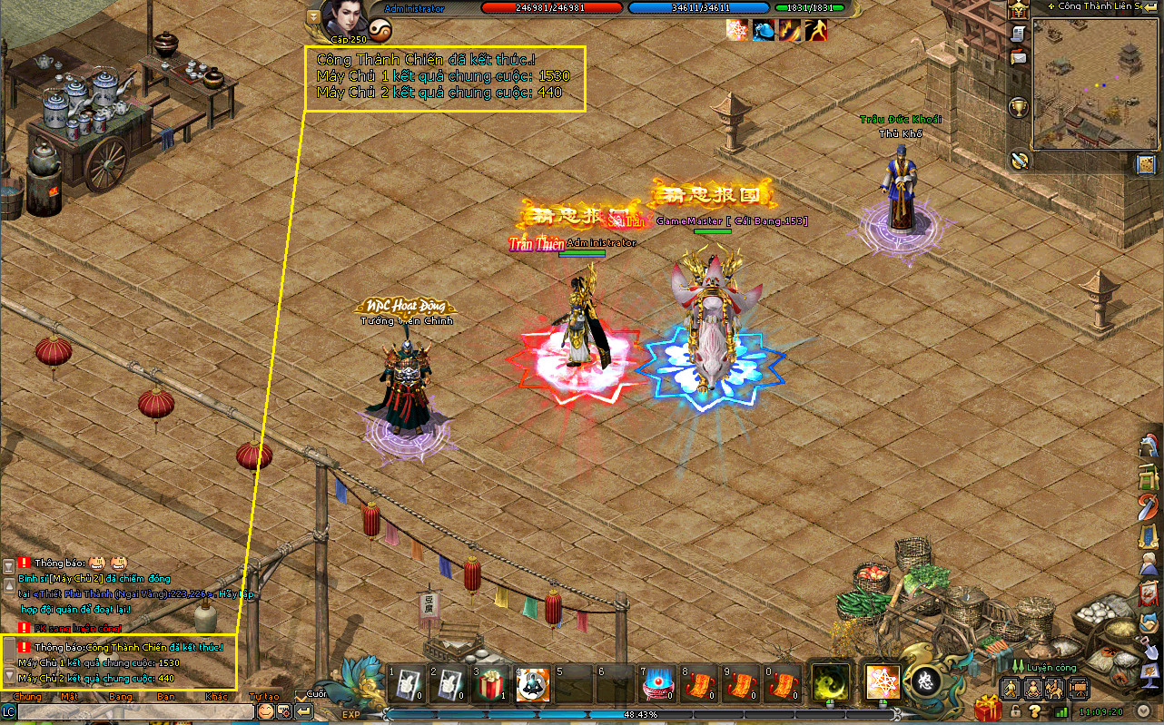 - Sau 19H30 quí nhân sĩ có thể vào game tại cụm: Công Thành Liên Server Vòng sáng màu đỏ đại diện cho nhân sĩ Máy chủ 1 Vòng sáng màu xanh đại diện cho nhân sĩ Máy chủ 2