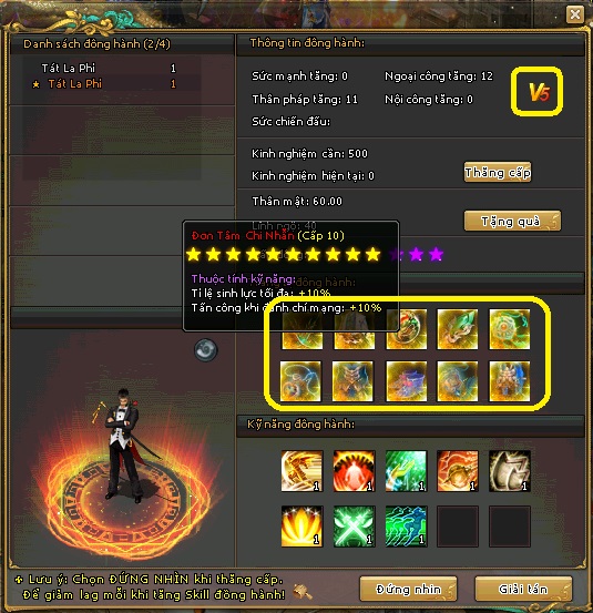 • Nâng cấp Kỹ năng hỗ trợ trên giao diện Nhân vật (F1)Đồng hành (F9) quí đồng đạo hãy chọn mục Nâng Cấp Kỹ Năng.