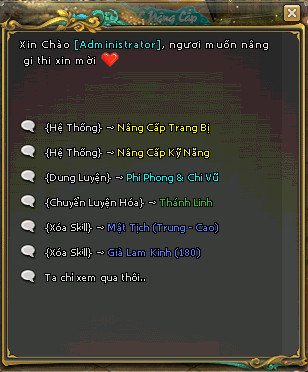 và đồng thường theo yêu cầu của hệ thống. Khi có đủ hãy đến tìm gặp NPC Nâng Cấp tại thành chính.!