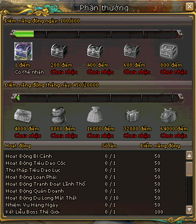- Hàng ngày người chơi có thể thông qua tất cả các hoạt động ngày để tích lũy điểm năng động cho mình.
