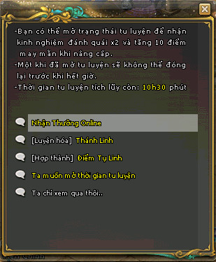 Tu Luyện Châu khi Online đạt đủ điều kiện bên dưới.